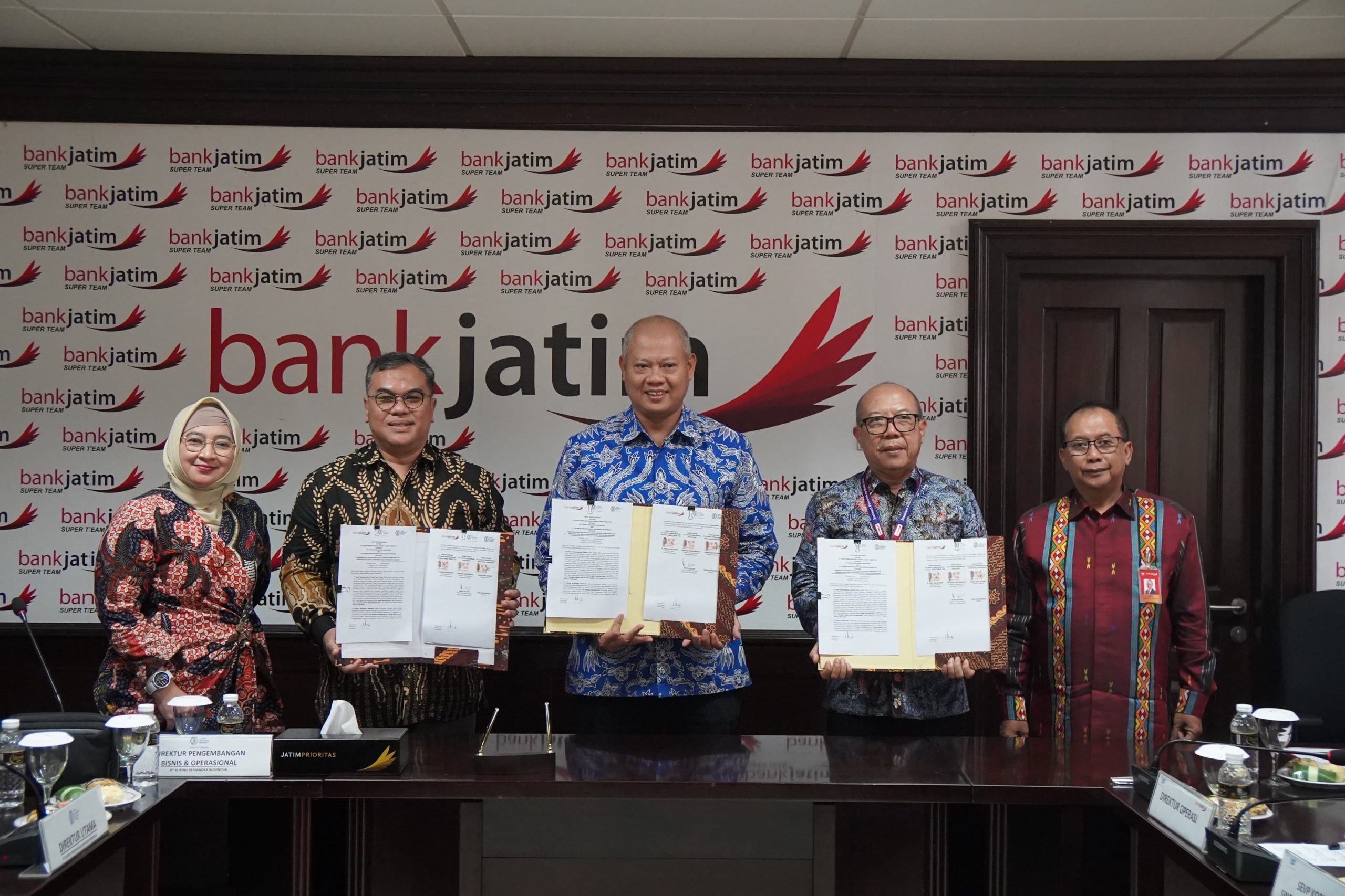 SurabayaHebat.com – PT Bank Pembangunan Daerah Jawa Timur Tbk (bankjatim) telah melakukan penandatanganan Nota Kesepahaman atau Memorandum of Understanding (MoU) dengan PT Kliring Berjangka Indonesia (Persero) (PT KBI) dan PT Kliring Perdagangan Berjangka Indonesia (PT KPBI) pada hari Selasa (6/8). MoU yang ditandatangani yaitu tentang Kerja Sama Layanan Jasa Perbankan dan Pemanfaatan serta Pengembangan Sistem Resi Gudang.
