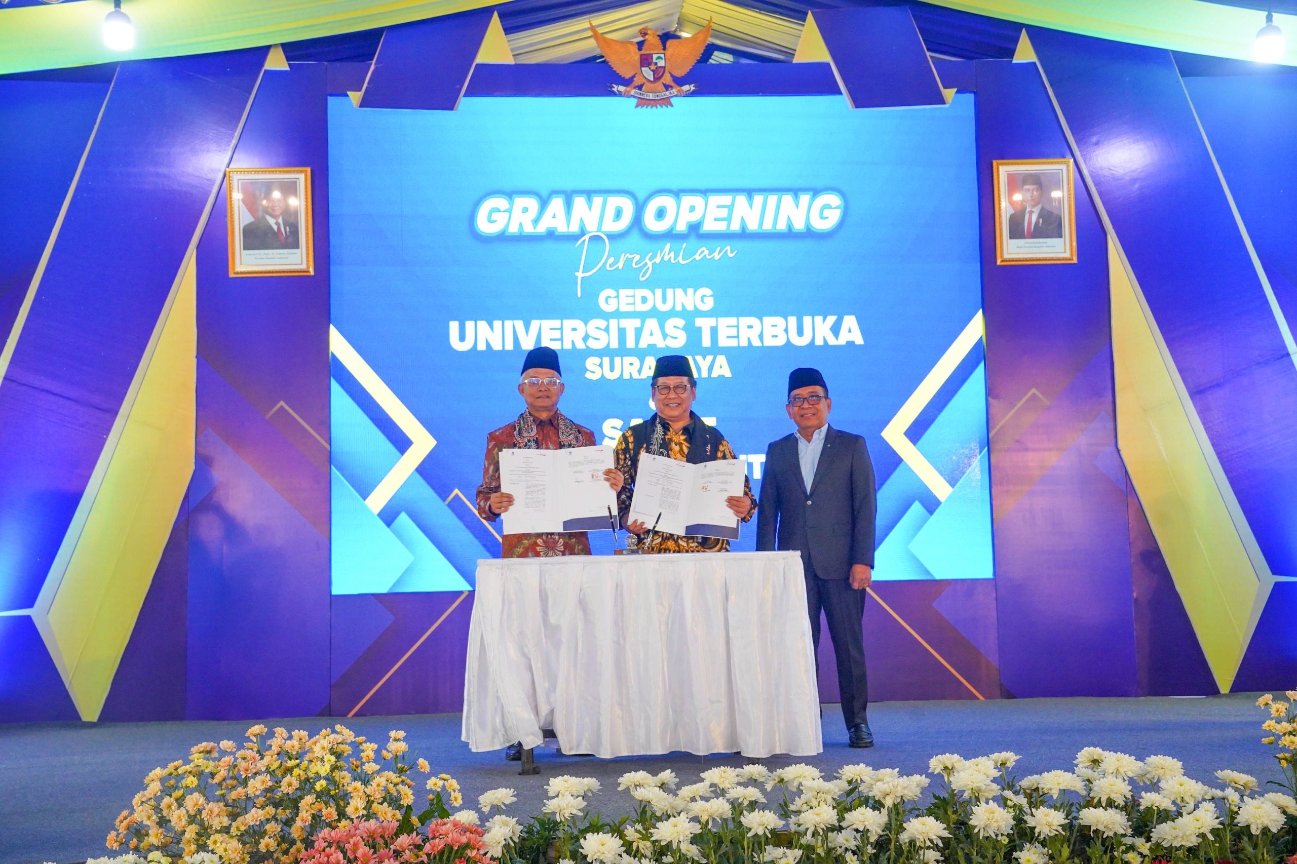 Ia juga mengucapkan selamat atas peresmian gedung baru UT Surabaya. “Semoga melalui pembangunan infrastruktur yang mendukung dan kolaborasi multipihak, UT semakin mampu memperkuat perannya dalam membentuk generasi pelajar yang berguna bagi nusa dan bangsa,” ucap Zulhelfi.
