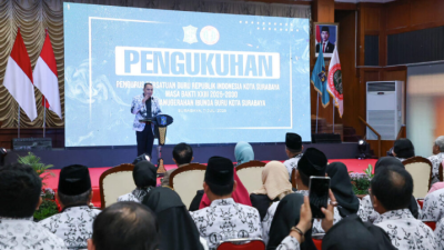 SurabayaHebat.com – Wali Kota Surabaya, Eri Cahyadi secara resmi mengukuhkan Pengurus Persatuan Guru Republik Indonesia (PGRI) Kota Surabaya masa bakti 2025–2030 di Graha Sawunggaling, Jumat (11/7/2025). Dalam kesempatan tersebut, Eri…