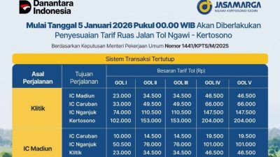 SURABAYAHEBAT.COM – PT Jasamarga Ngawi Kertosono Kediri (JNK) resmi mengumumkan pemberlakuan penyesuaian tarif baru untuk Ruas Jalan Tol Ngawi-Kertosono. Perubahan tarif ini akan mulai berlaku efektif pada Senin, 5 Januari…