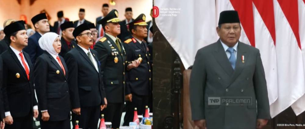 SURABAYAHEBAT.COM – Gubernur Jawa Timur Khofifah Indar Parawansa bersama jajaran Forum Koordinasi Pimpinan Daerah (Forkopimda) Jatim menghadiri Sidang Paripurna Istimewa DPRD Jawa Timur untuk mendengarkan pidato kenegaraan Presiden Prabowo Subianto dalam rangka HUT ke-80 Kemerdekaan RI di Gedung DPRD Jatim, Jumat (15/8/2025).